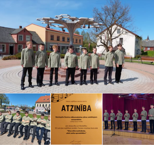Ventspils Centra sākumskolas zēnu ansamblis 3. maijā piedalījās III Latvijas izglītības iestāžu Tautas mūzikas festivālā “Visa sēta sudrabota, vārti zelta sprodzītēm” Saldū.