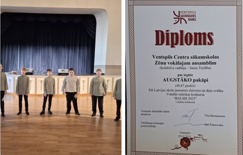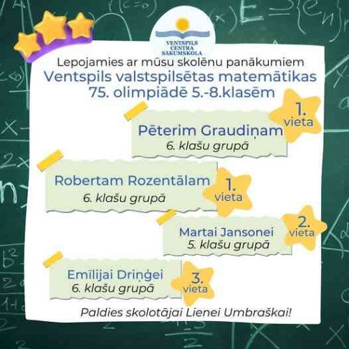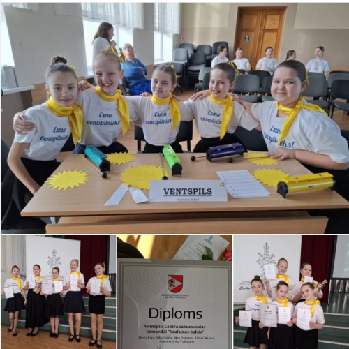 Apsveicam meitenes ar iegūto 1.vietu. Paldies skolotājām Ritai Vēverbrantei un Santai Treilībai par ieguldīto darbu.