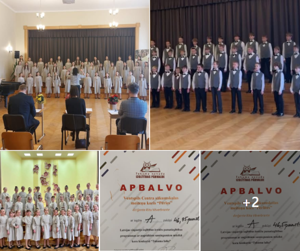 19.04.2024. Tukuma Raiņa valsts ģimnāzijā notika Latvijas vispārējo izglītības iestāžu pamatizglītības programmas ar augstākiem sasniegumiem mūzikā koru konkurss “Tukuma laiks”, kurā piedalījās trīs kori no Ventspils Centra sākumskolas – meiteņu kori “Pērles” un “Pērlītes”, vadītāja Rita Vēverbrante, koncertmeistare Ilva Freiberga un zēnu koris “Vivo”, vadītāja Santa Treilība, koncertmeistare Anna Freimane. Lepojamies ar visu kolektīvu augstajiem sasniegumiem – Augstākajām pakāpēm.