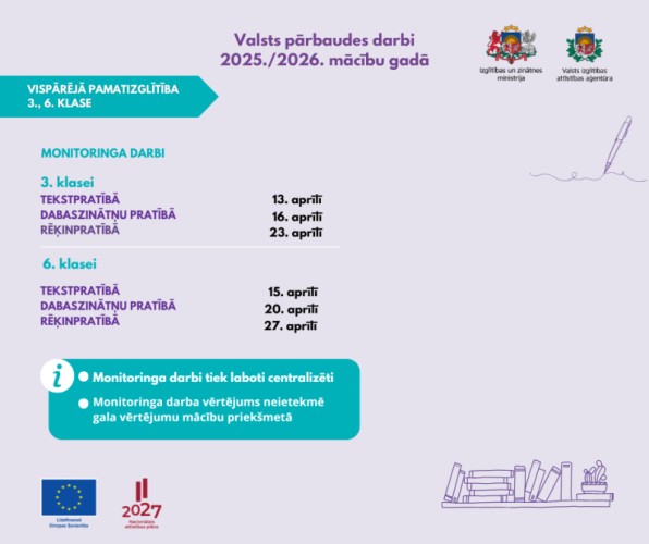 3. klasei – monitoringa darbi tekstpratībā, dabaszinātņu pratībā, rēķinpratībā